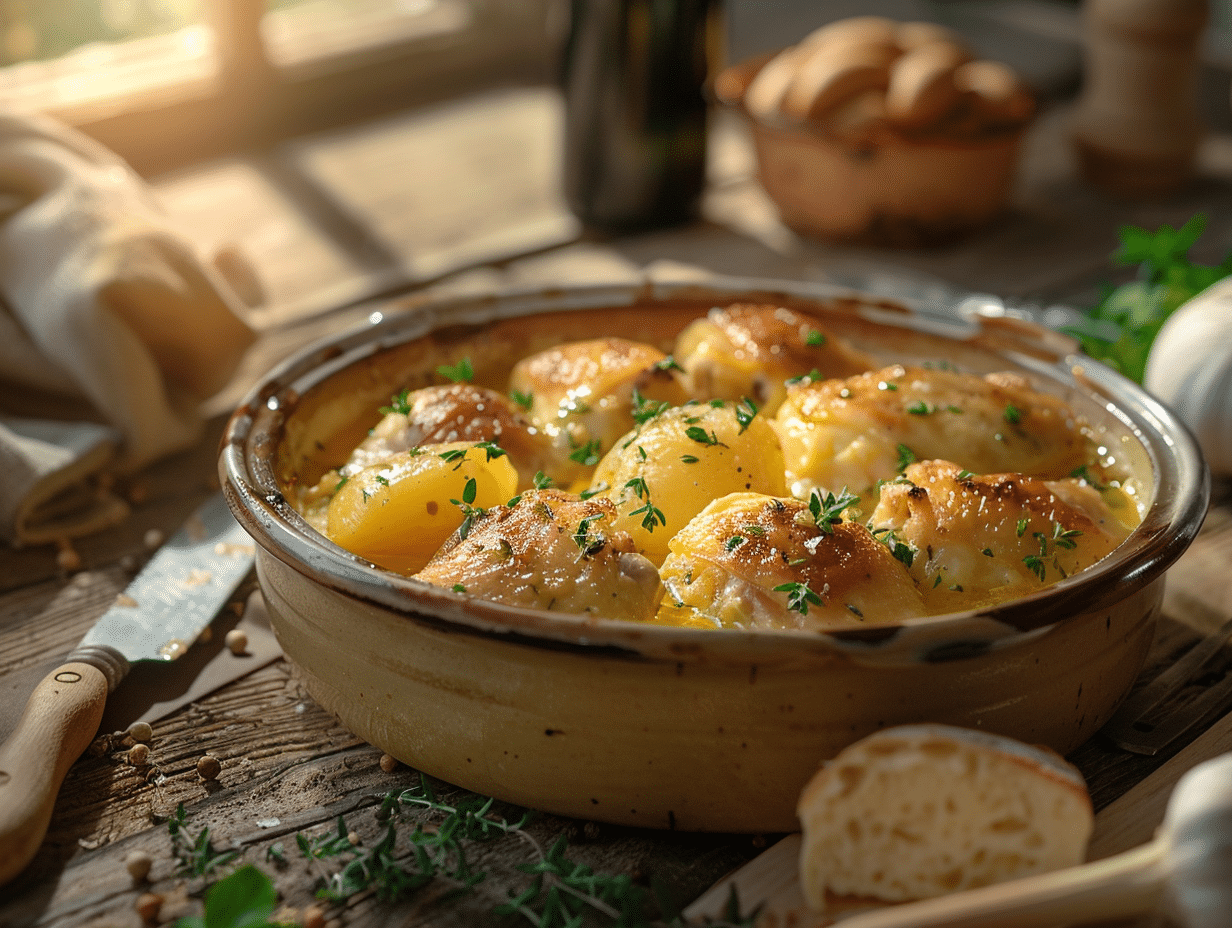 Pour une texture parfaite, tout repose sur la douceur de la cuisson. Une cocotte en fonte diffuse la chaleur de façon homogène et sublime la volaille. Ici, l’impatience n’a pas sa place : donner du temps à la sauce, c’est laisser les goûts s’apprivoiser et se révéler pleinement.